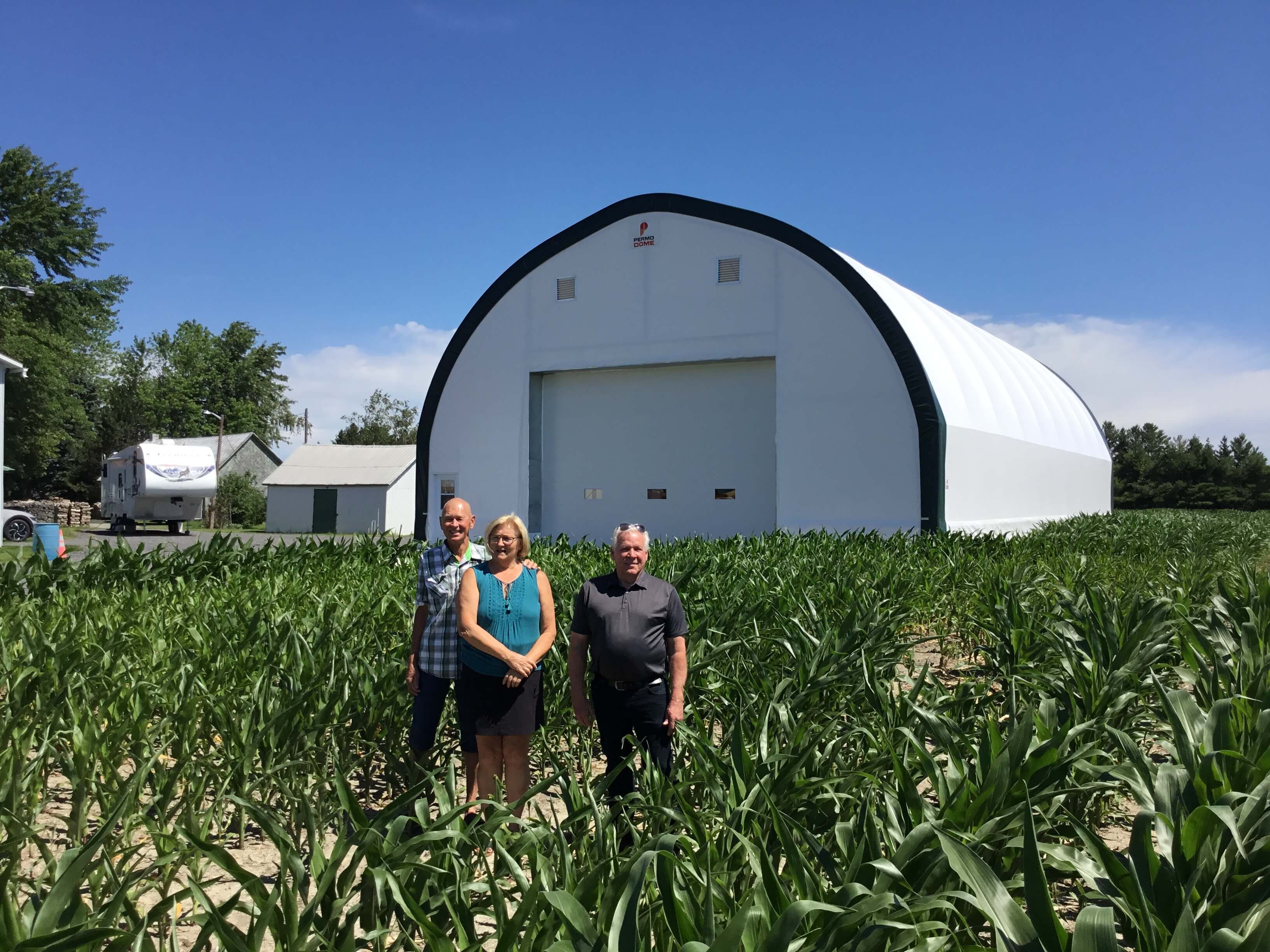 Lucie et Jean-Pierre cultivent 111 acres de maïs et 47 acres de soya. Leur labeur nécessite donc de la machinerie bien protégée et entretenue. Pour répondre à ce besoin, Jean-Pierre Frappier, représentant pour Les Industries Permo inc., leur a proposé un dôme VHP600 de 50 pieds par 90 pieds composé de structures d’acier et d’une membrane souple.