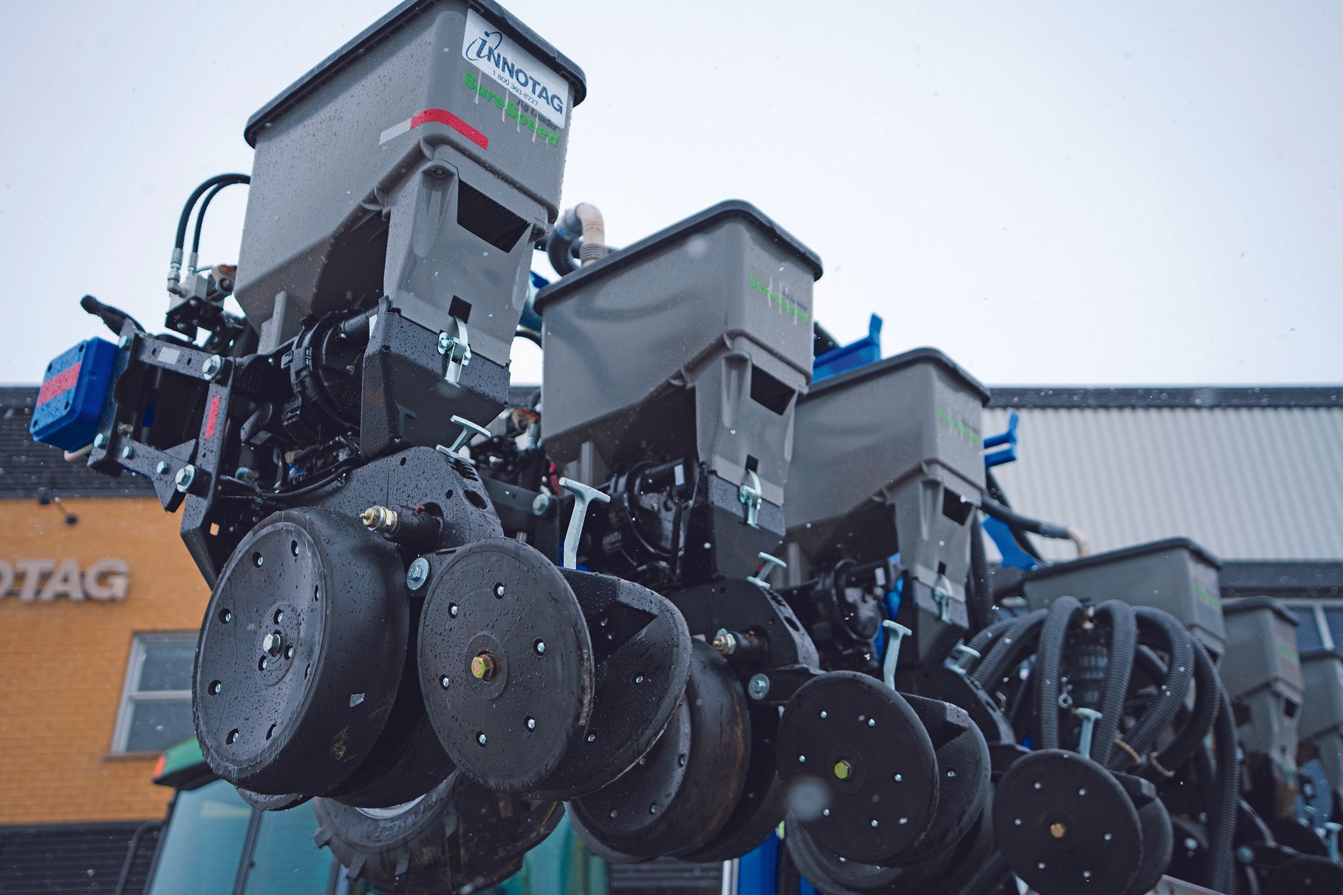 Afin de gagner en efficacité, Vincent leur a conseillé de remplacer leur planteur à 8 rangs par un planteur Innotag de 12 rangs doté du système SureForce – assure une profondeur uniforme rang par rang au moyen d’un cylindre hydraulique – et du système électrique de distribution par élévateur SureSpeed haute vitesse relié aux unités électriques du planteur.