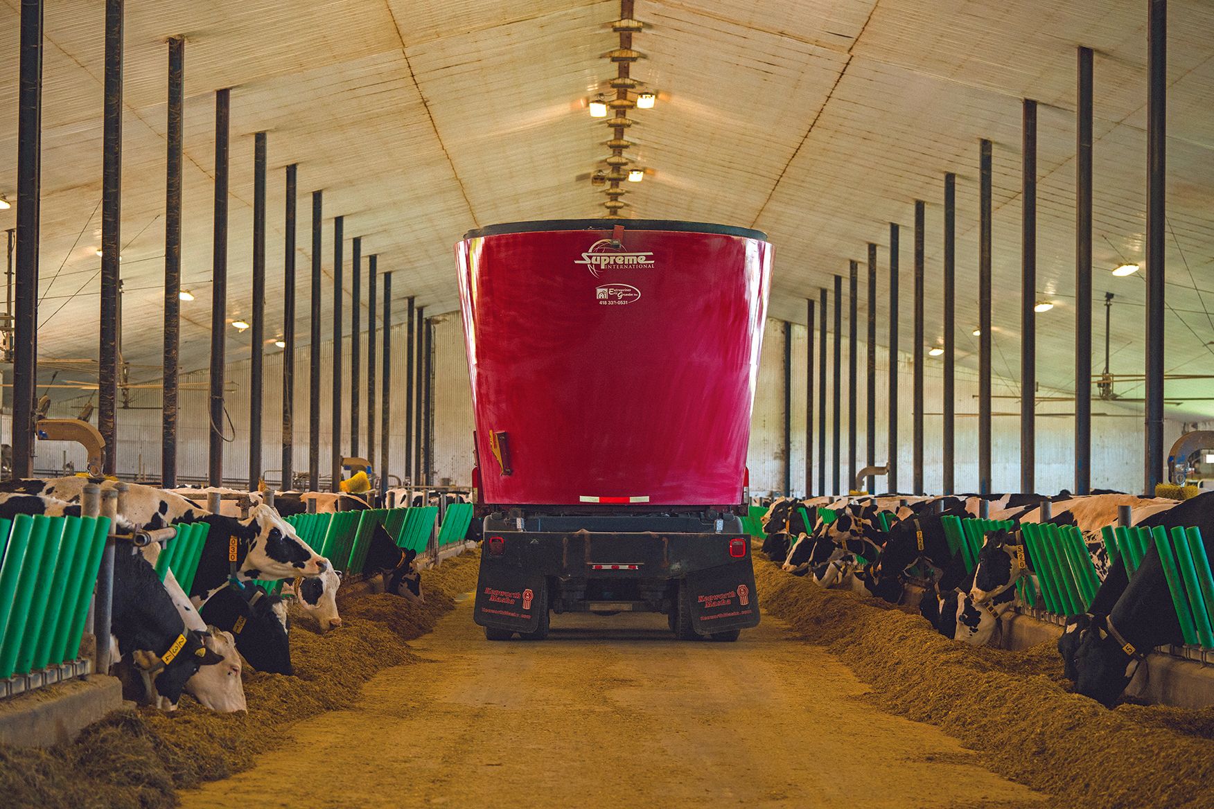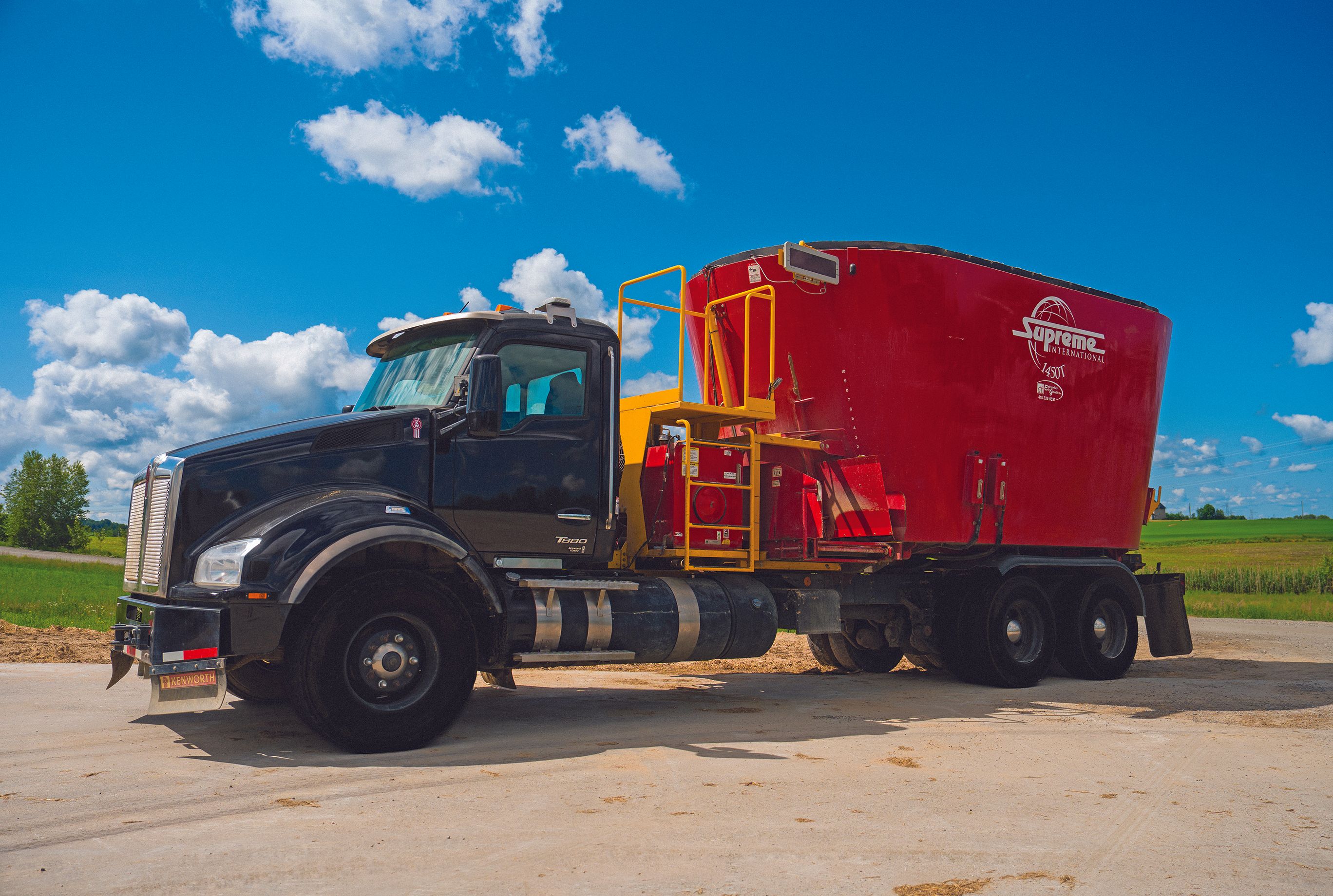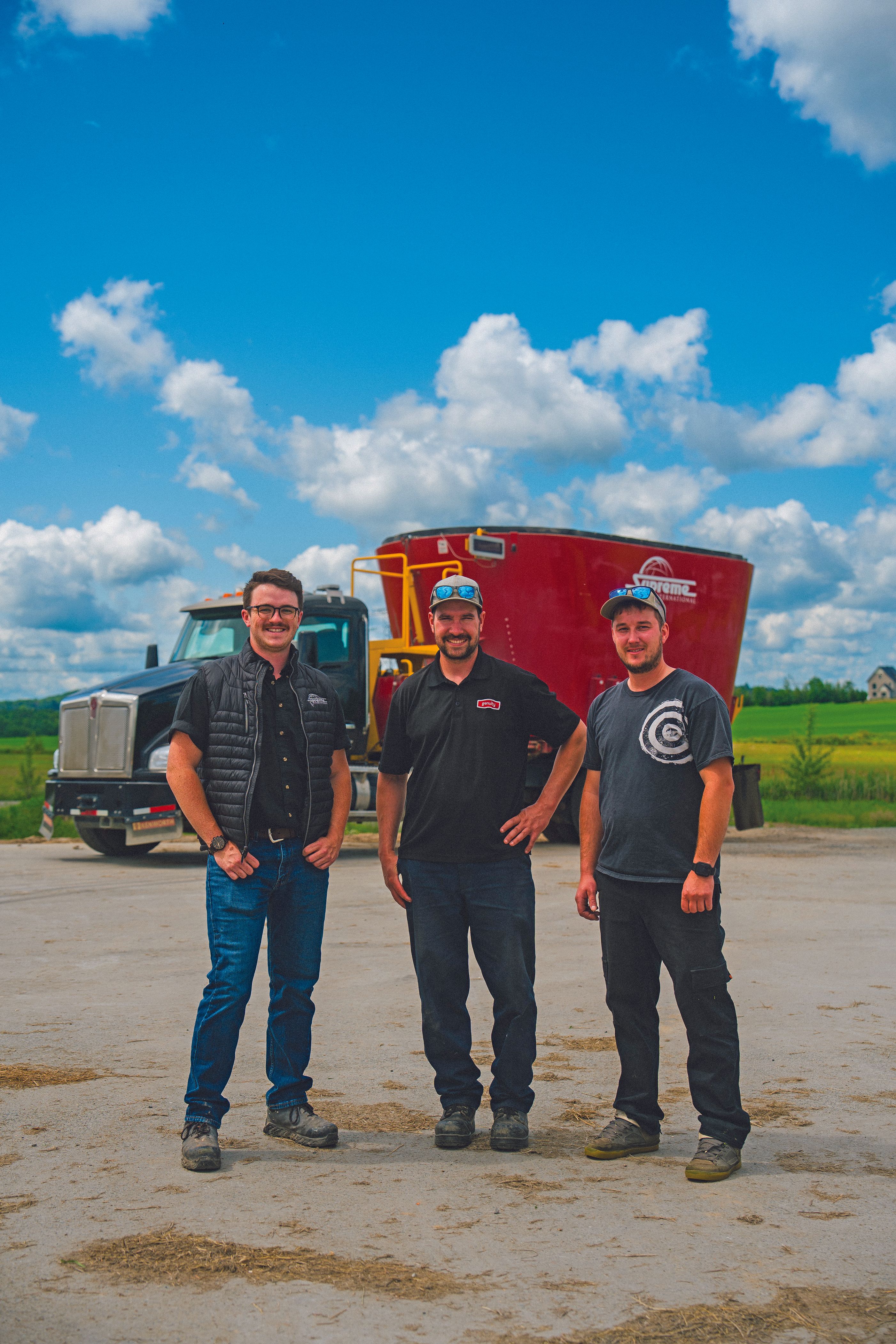 Or, sur la ferme, des mélangeurs Supreme International roulaient depuis plus de 20 ans : peu d’entretien et jamais de bris! Fiabilité, simplicité, uniformité des mélanges... Supreme International ce serait donc encore! Les Entreprises Éric Grondin inc. ont comblé les besoins de la Ferme Roulante avec un mélangeur de 3e génération, le 1450T Truck Mount, monté sur un camion Kenworth Heavy Specs. Et c’est directement du tableau de bord qu’on choisit le temps, le mode de brassage, le nombre de tours par minute, le type de mélange et autres. Livré au printemps 2022, cet équipement affiche déjà des centaines d’heures au compteur. Et ça roule! Quant au camion 2013 avec mélangeur Supreme International 1200T, il rend toujours de loyaux services à raison d’une dizaine d’heures par jour.